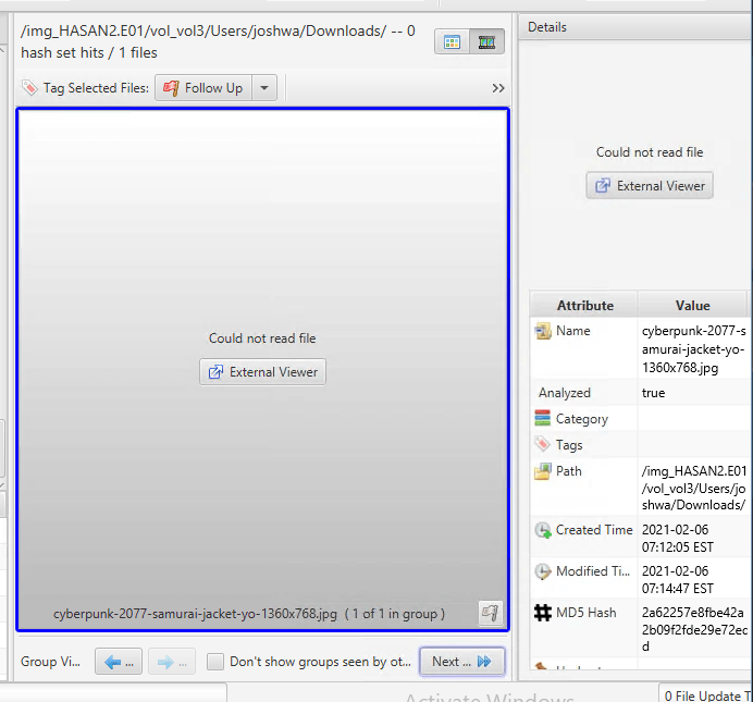 Question 10: A user has his full name printed on his desktop wallpaper. What is the user’s full name? Okay, it is now clear to me and I am for certain that this lab is not operation correctly and I confirmed this through this question — as well as the previous one I had issues with. According to every writeup for this room, they go through images/videos and are able to see them. For mine, it only gives me load errors. This YouTube walkthrough – TryHackMe: Disk Analysis & Autopsy Walkthrough – also confirms that is the room that is causing errors. This is okay, as I will still learn through others walkthroughs and submit the correct answers.